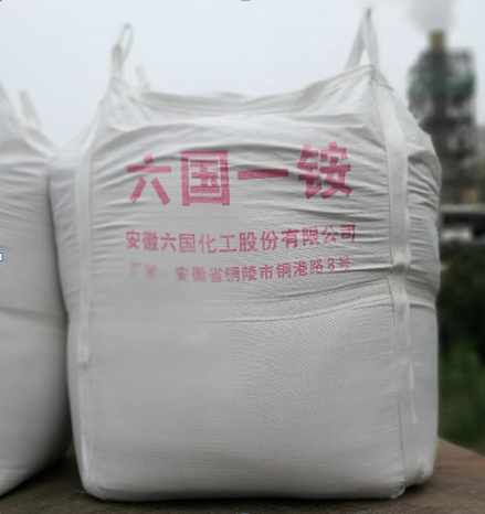3、印刷字樣:噸袋前后寫上”六國一銨”四個大字,下面寫上廠址,字體顏色為紅色字體。