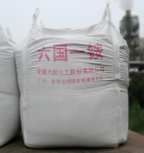 3、印刷字樣:噸袋前后寫上”六國一銨”四個大字,下面寫上廠址,字體顏色為紅色字體。