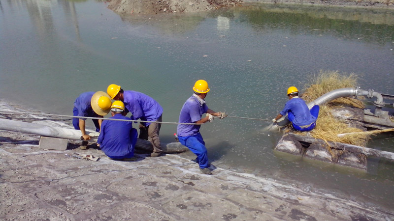 為配合磷石膏堆場南部淋溶水環(huán)境整治項目的施工,8月11日上午,六國化工公司供水車間維修班員工頂著烈日、耐住高溫,順利完成了淋溶水泵一段近五十米管道的遷移工作。圖為供水車間人員正在進(jìn)行淋溶水管道的連接工作。