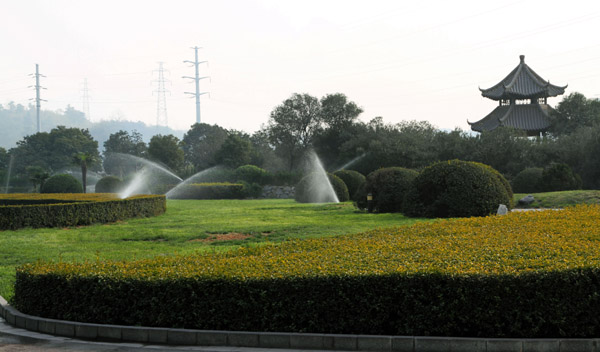 圖二:12月10日上午,該公司正搶抓晴好天氣澆灌綠化帶。