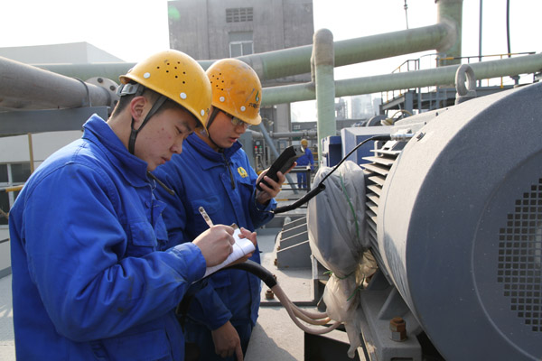 為實現設備檢測的精細化與數字化,提高設備故障的預知水平,降低設備故障率,保障生產裝置設備穩定、高效運行。今年以來,安徽六國化工股份有限公司設備點檢巡檢系統全面上線。圖為12月10日,該公司磷酸車間技術人員在磷酸裝置技術升級改造項目新裝置操作平臺,查看、記錄、分析A2102B攪拌槳電機在點檢周期內的運行狀態和趨勢。