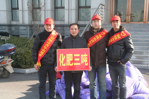 12月27日上午,在銅陵市2014年文化、科技、衛生“三下鄉”暨第六屆“鄉村青年文化節”活動啟動儀式上,銅化集團青年志愿者為銅陵縣西湖鎮群眾贈送“六國”牌復合肥和“九華山”牌過磷酸鈣共計三噸。贈送化肥已成為此項活動的重頭戲。圖為活動現場。