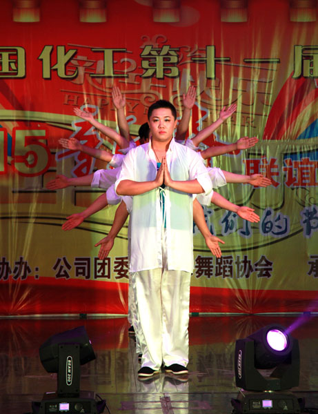 六國人自己的“春晚”,“80后”、“90后”們想法設(shè)法出奇出新。瞧,磷酸車間的舞蹈《千手觀音》,是由八位大小伙子利用工余時間自編自導(dǎo)自演,反串、有些許無厘頭的幽默搞笑效果十分調(diào)動現(xiàn)場氣氛。再看該公司音樂舞蹈協(xié)會選送的現(xiàn)代舞,是堪稱年度最火神曲《狐貍叫》。還有國星化工選送的舞蹈《康定情歌》,藏族服飾裝扮的姑娘小伙們青春洋溢、熱情奔放。“我們的時光,是六國的時光。”氮肥廠技術(shù)員李成、丁申龍等的原創(chuàng)歌曲《六國時光》,小伙子們懷抱吉他、麥克風(fēng)自彈自唱。政工支部的鄭國寧、吳昊自創(chuàng)自演,為大伙帶來了相聲《想唱就唱》,二位形象兼具高矮胖瘦的喜感效果,演出中,二位捧哏逗哏配合天衣無縫、笑料百出,不時引發(fā)哄堂大笑。此前,二位還將這個相聲節(jié)目,搬上了銅陵市青年企業(yè)家年會的舞臺吶!