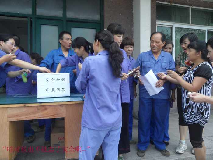 為提高員工安全意識,日前,六國化工公司供水車間開展安全知識有獎競答活動,圍繞公司安全生產方針、安全生產“三懂四會”、防火、滅火原理及方法等生產安全知識命題,以抽題回答、答對有獎為形式,吸引車間員工踴躍參加,收到良好效果。