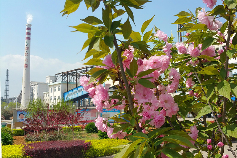 春日里的湖北六國化工公司,主干道兩側綠化帶里樹木郁郁蔥蔥,迎春、海棠、晚櫻等花卉次第開放,令人格外神清氣爽。