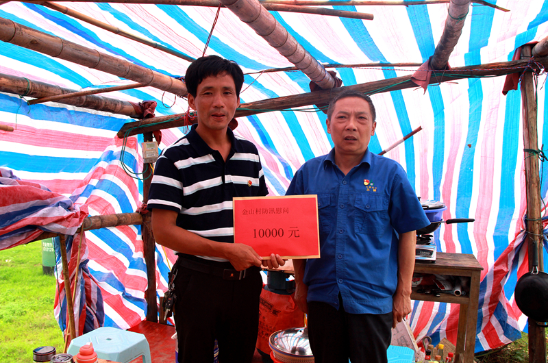 7月30日下午,六國化工黨委副書記吳健一行前往結對幫扶村金山村,看望慰問扶貧干部及戰斗在防汛一線的工作人員,并為他們送去了1萬元慰問金。
