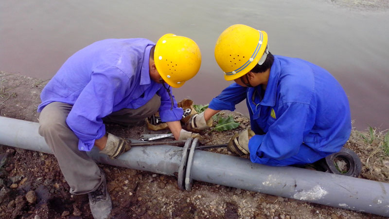 PO管銜接并不像想象的那么容易,有些管子陷入淤泥當(dāng)中,人根本就不能靠近,他們找來鐵鍬,抬起一頭;另一頭陷得比較深,只能找來木頭墊子,人踩在上面將其抬起。畢竟是在淤泥上站著,用不上力,他們費(fèi)了好大勁才將其拉起。就這樣,120m長的管道安裝完成已經(jīng)是中午12點30分了。下午又運(yùn)來20根PO管,他們繼續(xù)忙碌著一直到很晚。