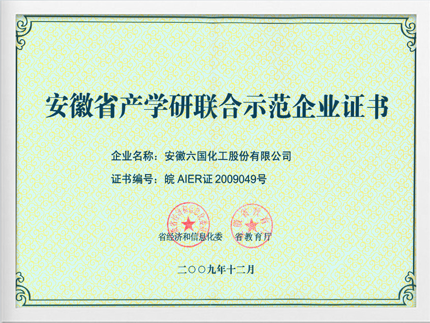 安徽省產(chǎn)學(xué)研聯(lián)合示范企業(yè)證書