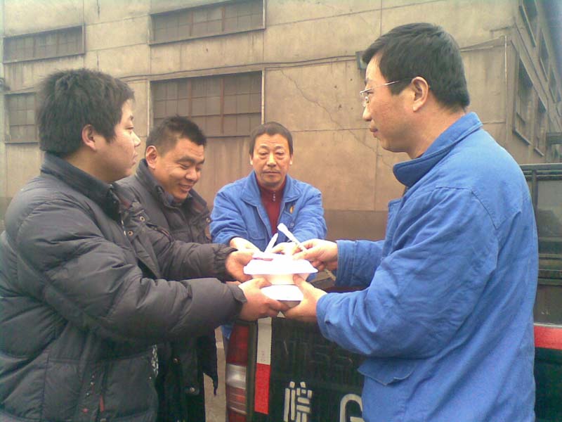 圖二:公司共建單位——郊區公安消防大隊用消防車,將生活用水送到該公司辦公樓、各車間及磷銨生活區。