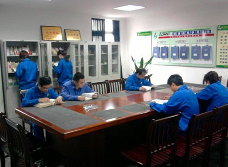 圖為該公司磷銨車間員工工余時間在讀書小組內的學習情景